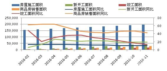 2016年中南地區(qū)固定投資額穩(wěn)定增長(zhǎng),同比增速一直保持在13%左右,前幾年靠大規(guī)模高增長(zhǎng)固定投資來拉動(dòng)經(jīng)濟(jì)增長(zhǎng)的發(fā)展模式正在改變,另一方面,房地產(chǎn)投資規(guī)模持續(xù)擴(kuò)大,除了在第二季度房地產(chǎn)投資增速小幅回落外,其他三個(gè)季度的增速都保持著上揚(yáng)態(tài)勢(shì)。房屋施工面同樣有一個(gè)穩(wěn)定的同比增速,房屋竣工面積和銷售面積則呈小幅波動(dòng)下滑態(tài)勢(shì),同時(shí)新開工面積整體小幅上升,特別是在一季度有比較高的增速。總體來看,全年的水泥需求有一定的提高,支撐水泥市場(chǎng)行情回暖。