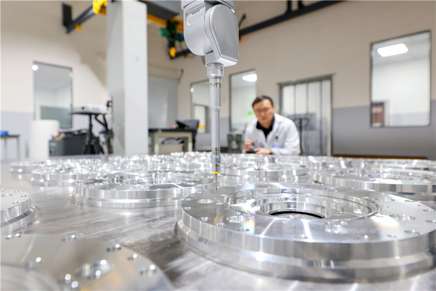 2021年1月下旬,在眾拓航空航天科技(江蘇)有限責(zé)任公司一期投資2.3億元建設(shè)的五軸加工中心項(xiàng)目現(xiàn)場(chǎng),一臺(tái)采用機(jī)銑工藝的大型飛機(jī)蒙皮雙五軸鏡像銑設(shè)備正在高效率運(yùn)轉(zhuǎn)。廠區(qū)另一側(cè),技術(shù)人員正在對(duì)剛產(chǎn)出的航天設(shè)備外殼壁板樣件進(jìn)行檢測(cè)。依靠高端設(shè)備和先進(jìn)技術(shù),該公司產(chǎn)品主要應(yīng)用于國(guó)家尖端航空航天器,并為中外知名航空航天供應(yīng)商提供產(chǎn)品與技術(shù)支持。