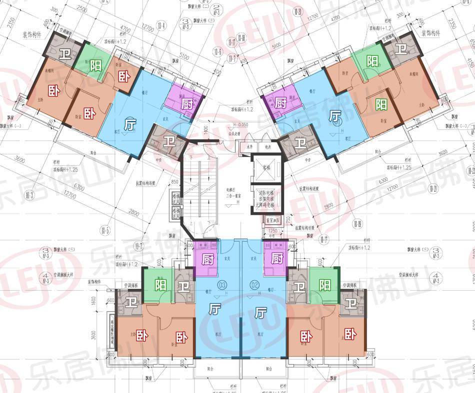 洋房方面,整體呈合圍式布局,樓高31-33層不等,除了1、6座為2梯5戶外,余下樓棟均為2梯4戶設(shè)計。