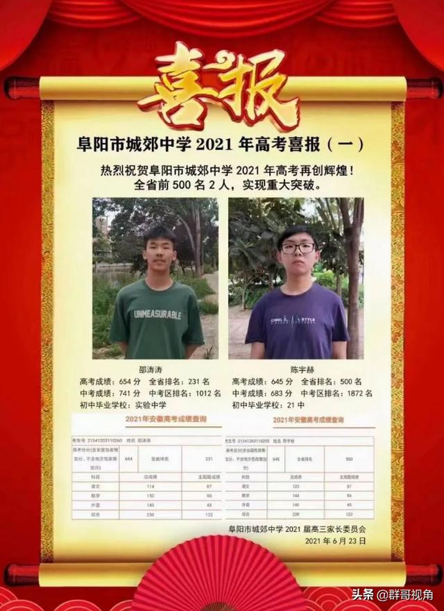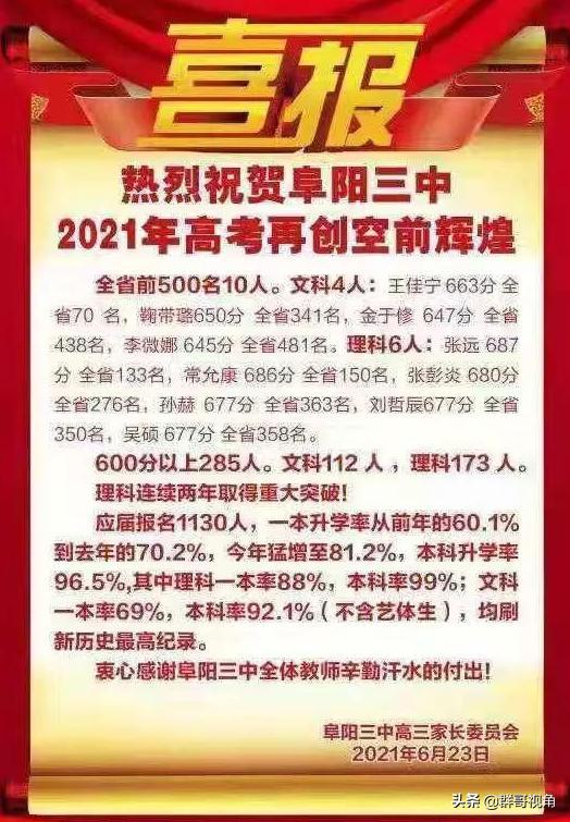 阜陽(yáng)市主要高中2021年高考喜報(bào)阜陽(yáng)一中、三中、城郊、臨泉一中