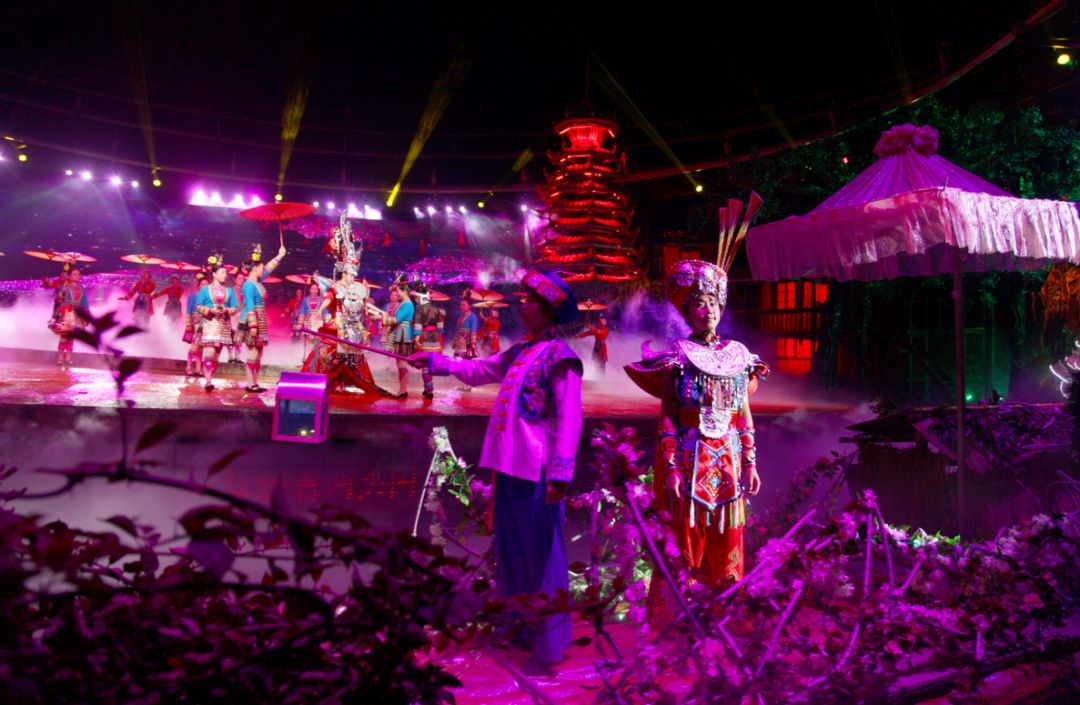 《坐妹》是首部侗族風(fēng)情大型實景演出,演出通過“走姑娘”“鬧姑娘”等四個篇章,將侗族地區(qū)豐富多彩的傳統(tǒng)文化元素比如耶歌文化、婚戀文化傾情展現(xiàn),同時與全國蕞大蕞復(fù)雜的梯式LED顯示屏以及高科技電腦燈光相結(jié)合,演出效果如夢幻世界一般,凡觀賞過此演出的人,無不嘆為觀止!