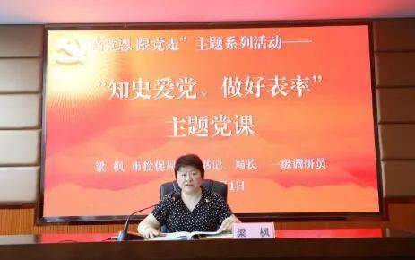 今年4月,時任南寧市投資促進(jìn)局黨組書記梁楓給該局黨員干部上主題黨課。來源:南寧市投促局網(wǎng)站