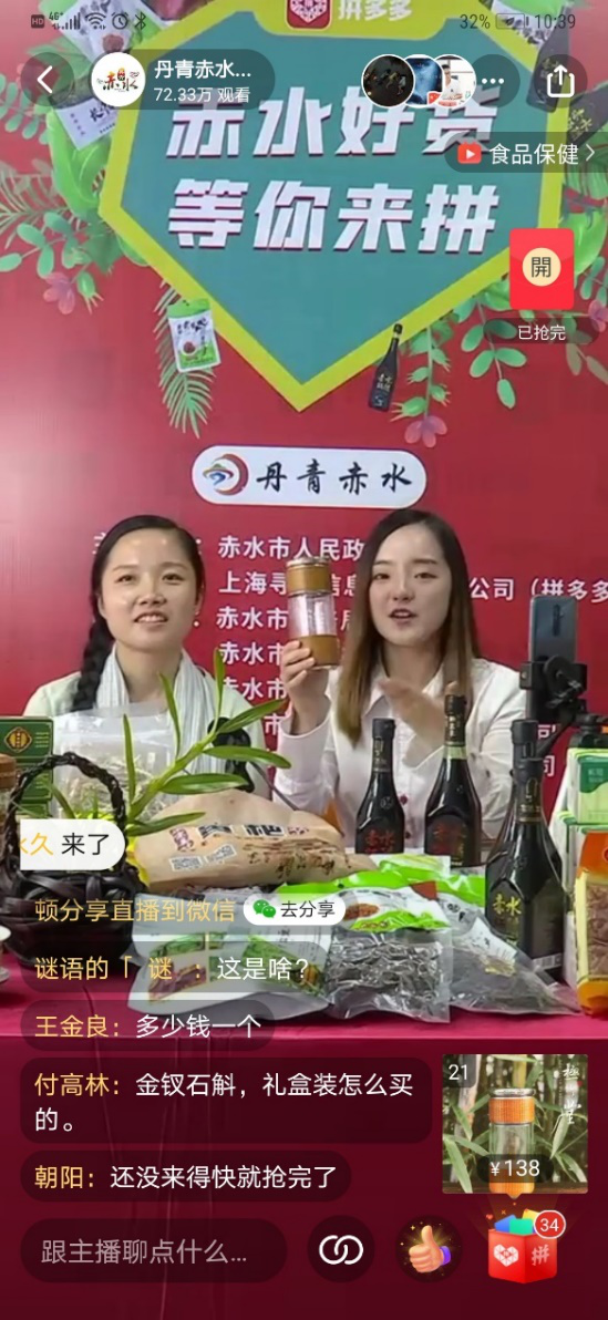 貴州赤水市長與全國人大代表拼多多直播 91萬網(wǎng)友助力“赤貨出山”