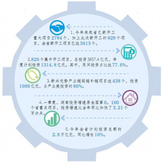 4月28日,三湘大地項(xiàng)目建設(shè)熱氣騰騰。829個(gè)總投資達(dá)3657.4億元的重大項(xiàng)目,這一天在湖南省14個(gè)市州同時(shí)吹響了開工“集結(jié)號(hào)”。