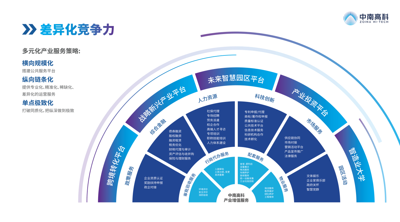 在軟性培育孵化服務(wù)支持方面,南昌新建區(qū)配合中南高科運(yùn)營(yíng)方積極開展項(xiàng)目招商、培育孵化。作為中國(guó)為數(shù)不多的、具有一體化產(chǎn)業(yè)服務(wù)體系和能力的制造業(yè)產(chǎn)業(yè)園區(qū)開發(fā)及運(yùn)營(yíng)商之一,中南高科提出了“4+6+5服務(wù)體系”,以蕞大化滿足企業(yè)工商、財(cái)稅、人資、法務(wù)、科技咨詢、綜合金融等全生命周期服務(wù)需求,以超級(jí)平臺(tái)賦能中國(guó)制造。