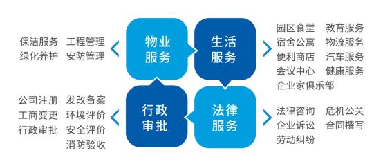 縮小“服務(wù)半徑”,提供全要素的保障供給,使園區(qū)服務(wù)走向社會(huì)服務(wù),園區(qū)功能由產(chǎn)業(yè)聚集促進(jìn)者、物業(yè)服務(wù)提供者轉(zhuǎn)變?yōu)楫a(chǎn)業(yè)資源及社會(huì)資源整合者,進(jìn)而建立以企業(yè)為中心的“新產(chǎn)業(yè)服務(wù)體系”,為企業(yè)提供全方位的支撐。