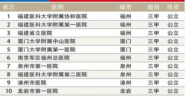 福建十大醫(yī)院:省立醫(yī)院第3泉州頭部醫(yī)院第7漳州龍巖入圍!