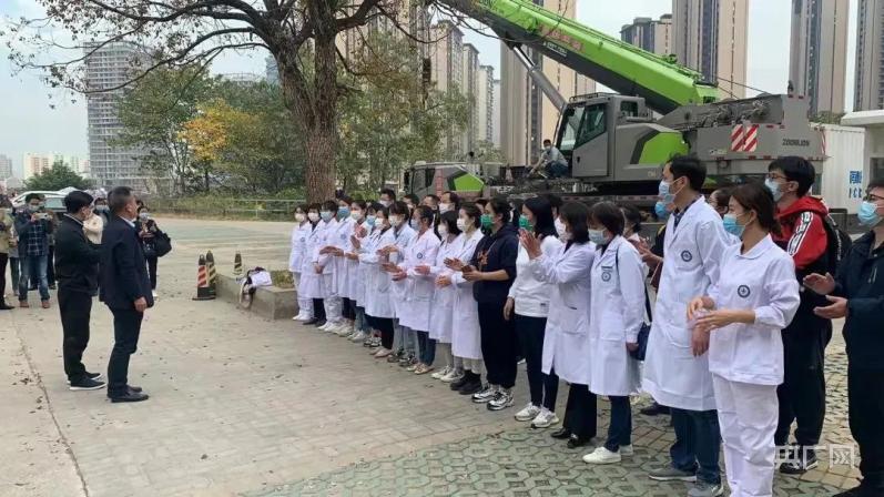 10月31日下午,江西省胸科醫(yī)院抽調(diào)20名檢驗人員、6名護理人員及7名后勤保障人員,籌備100余箱防疫物資及生活物資,組建成核酸采集應(yīng)急分隊,于下午3點50分出發(fā)奔赴鉛山緊急增援核酸檢測工作。