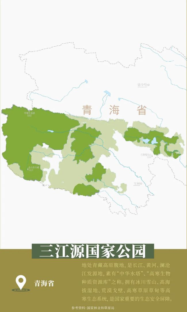 三江源,三江源國家公園位于我國的西部、世界屋脊——青藏高原的腹地、青海省南部,為孕育中華民族、中南半島悠久文明歷史的世界著名江河——長江、黃河和瀾滄江的源頭匯水區(qū),被譽(yù)為“中華水塔”,是我國重要的淡水供給地,維系著全國乃至亞洲水生安全命脈。