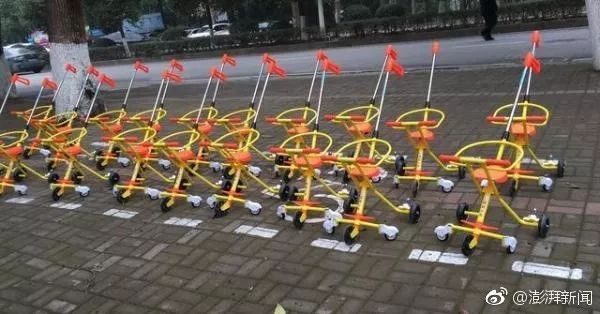 近日,武漢多個(gè)景點(diǎn)現(xiàn)共享童車,城管部門表示,會(huì)與共享單車一視同仁,如果違規(guī)投放,影響道路通行和安全秩序,占用公共資源將會(huì)對(duì)其進(jìn)行清理。