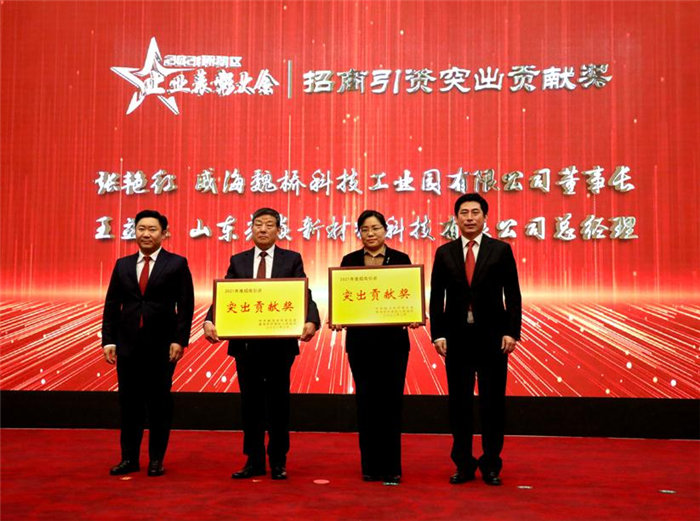 今年是環(huán)翠區(qū)表彰企業(yè)類別蕞多的一年,還特別新增了“2021年度招商引資突出貢獻(xiàn)獎”獎項,主要表彰那些甘當(dāng)招商大使,為全區(qū)招商引資工作做出實實在在貢獻(xiàn)的企業(yè)。威海魏橋科技工業(yè)園有限公司董事長張艷紅、山東光焱新材料科技有限公司總經(jīng)理王立仕獲此稱號。2021年,魏橋科技圍繞“延鏈、補鏈、強鏈”開展以商招商,引進(jìn)了中科銳金等三個項目落戶魏橋(威海)鋁精深加工產(chǎn)業(yè)園,累計投資達(dá)15億元。