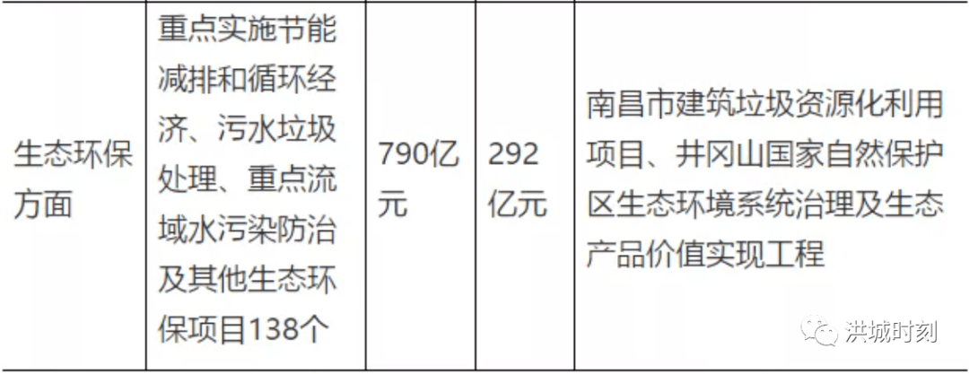 生態(tài)環(huán)保方面,項(xiàng)目個(gè)數(shù)138個(gè),總投資790億元,年度投資292億元,新開工代表項(xiàng)目包括南昌市建筑垃圾資源化利用項(xiàng)目、井岡山國(guó)家自然保護(hù)區(qū)生態(tài)環(huán)境系統(tǒng)治理及生態(tài)產(chǎn)品價(jià)值實(shí)現(xiàn)工程。