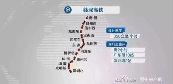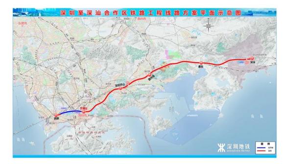 深汕鐵路起于深圳樞紐西麗站經(jīng)深圳市、惠州市至深汕合作區(qū)引入廣汕鐵路深汕站全長129公里設(shè)計(jì)時(shí)速350公里