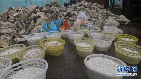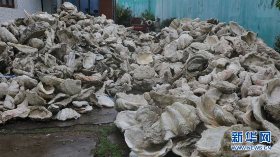 圖為瓊海警方扣押的部分硨磲原貝及其制品。 新華社記者 黎多江 攝